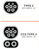 Combines Type 2 connector for AC charging with additional high-power DC pins for fast charging. Seen commonly in many European and North American vehicle manufacturers. CCS & Type 2 are the international standard for vehicles now, as the sockets essentially combine. So the type 2 top half combines with two DC connecting pins below to make the CCS socket.